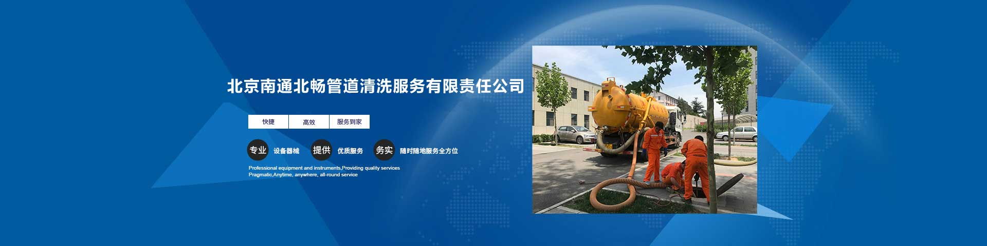 北京南通北畅管道清洗服务有限责任公司,成立于1994年,是一家专门从事非开挖施工的企业,拥有精锐的非开挖施工队伍,具有丰富的施工经验和完善的工程操作系统,是非开挖施工的权威机构。近十几年来不断壮大,现公司已在北京市建立了5个工程部,众多个服务网点,拥有经过严格的培训,其中15年工作经验者8名,7年以上工作经验技术员16人,拥有高压水射流管道工程车5台,大、小型化粪池清运专用车8辆。所有工程部均配有工程抢险车能快速优质的为客户服务。