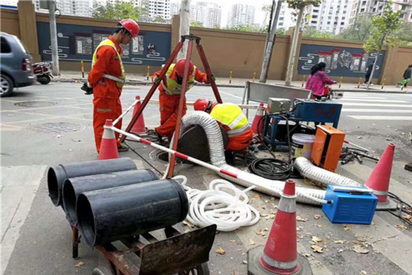 • 使用泥浆泵将检查井内污水排出至井底淤泥。将需要疏通的管线进行分段,分段的办法根据管径与长度分配,相同管径两检查井之间为一段。